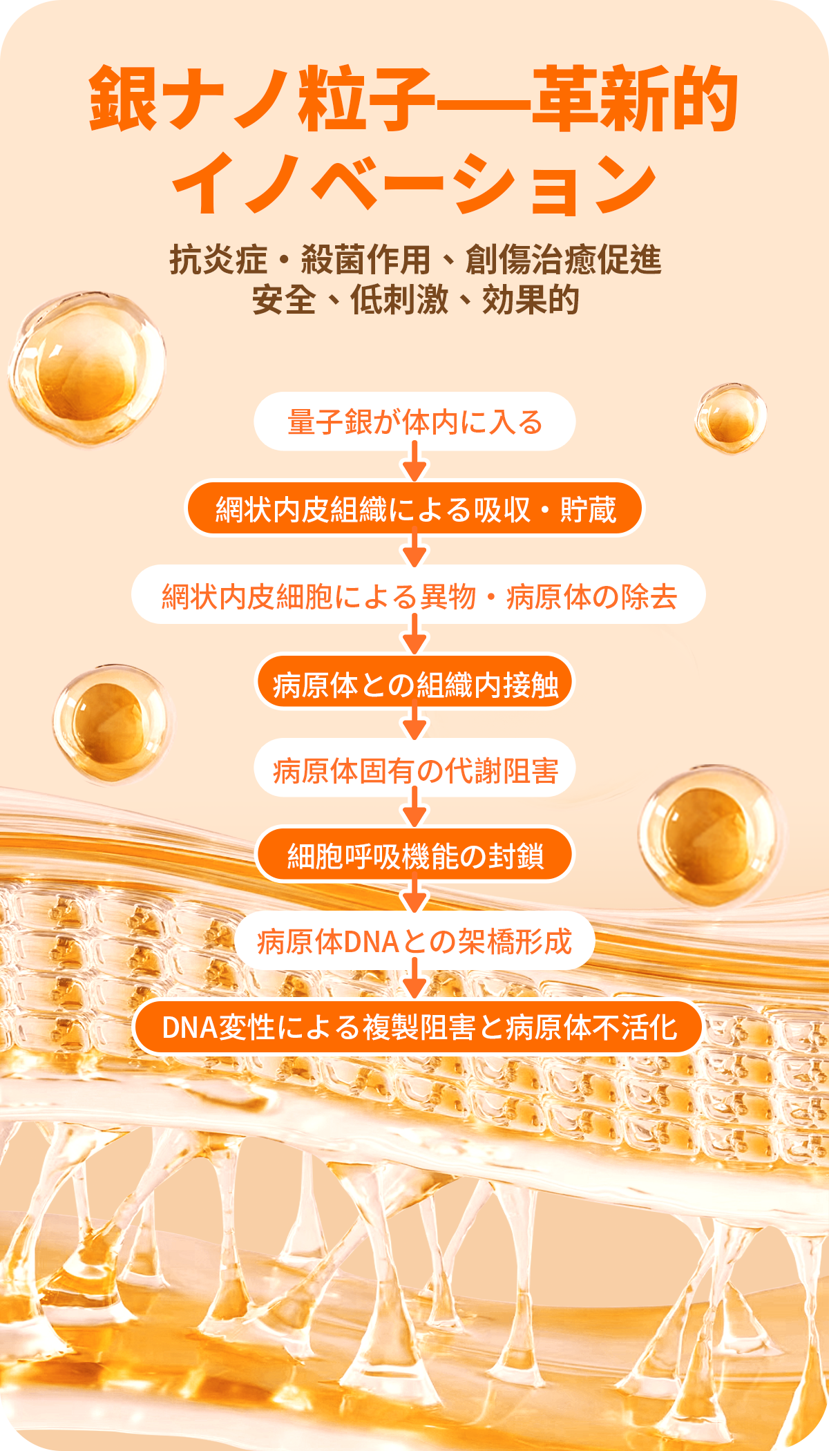量子銀成分は、創傷治癒、抗菌治療、薬剤送達用途において有効性が確認されており、安全・無毒、低刺激性です。
